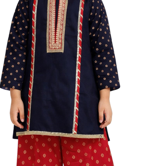 Girls Two Piece Printed & Embroidered